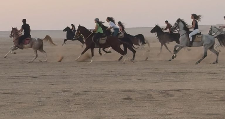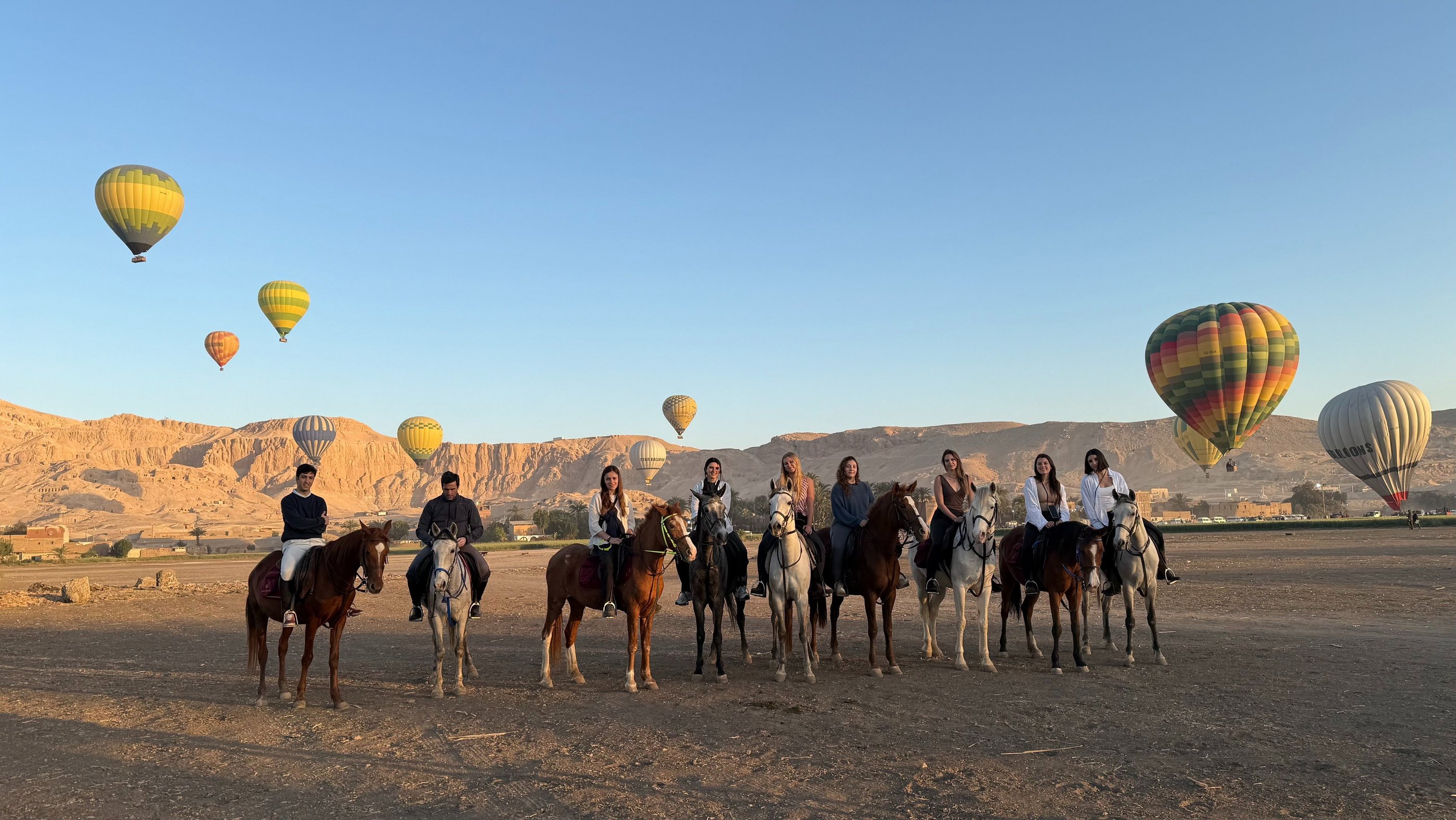 Montarás a caballo junto a las Pirámides, disfrutarás de un paseo en globo, nadarás con caballos y recorrerás las dunas de Fayoum.